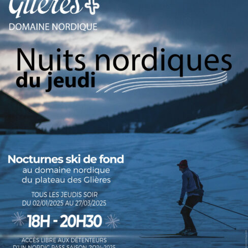 Le rendez-vous hebdomadaire du ski de fond en nocturne sous les étoiles tous les jeudis 18h00 à 20h30, à la frontale, découvrez les Glières « by night », glissez sur les pistes dédiées à la nocturne au cœur du Plateau et profitez d’un afterwork sain et sportif, en famille, entre amis. du 01/01/2026 au 19/03/2026 Accès libre…
